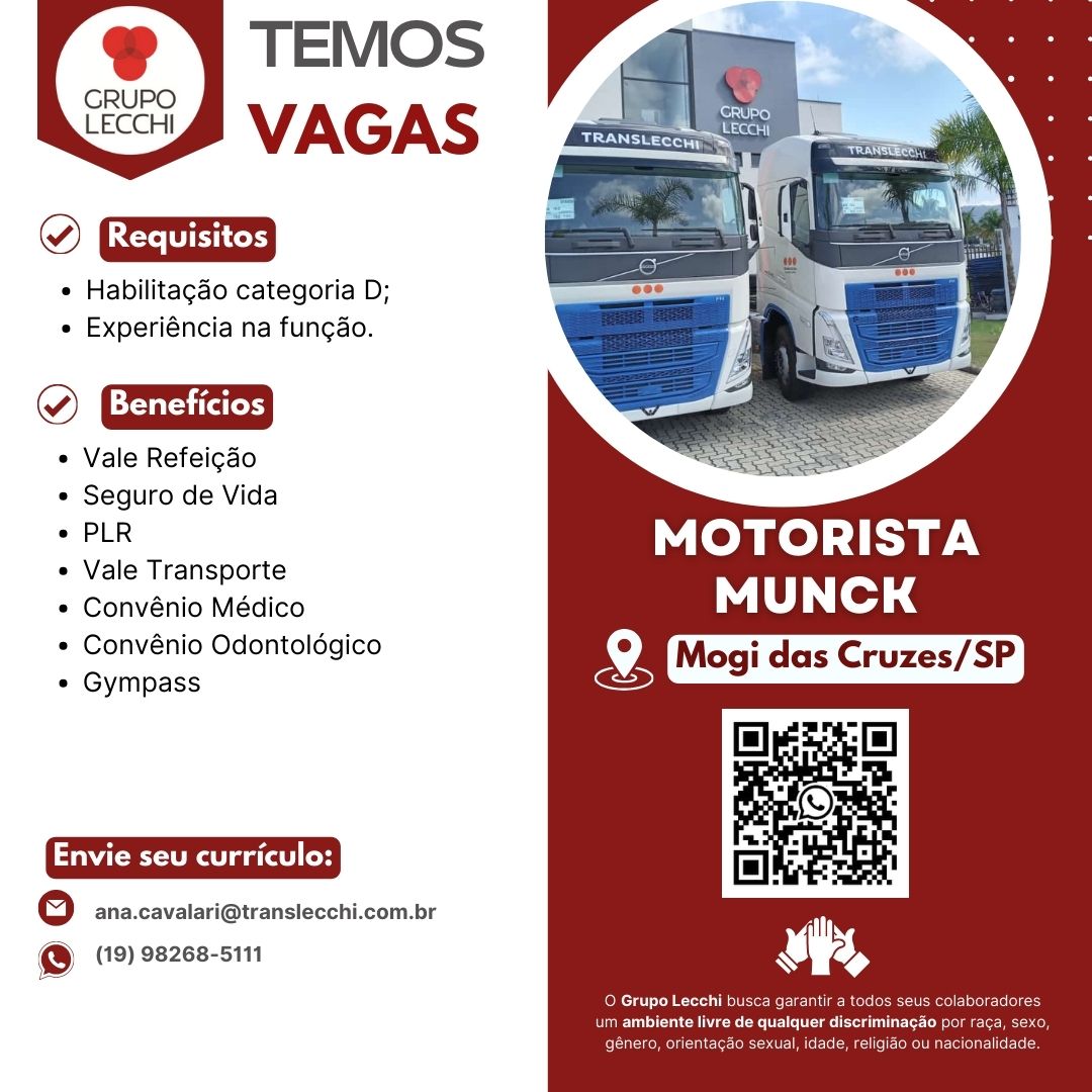 Estamos com uma excelente oportunidade para Motorista Munk no Grupo Lecchi!